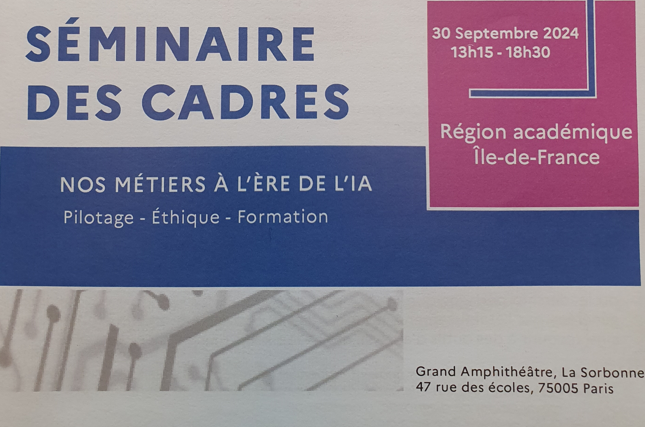 Le programme : https://www.ac-paris.fr/seminaire-nos-metiers-de-cadres-a-l-ere-de-l-intelligence-artificielle-30-sept-2024-131713