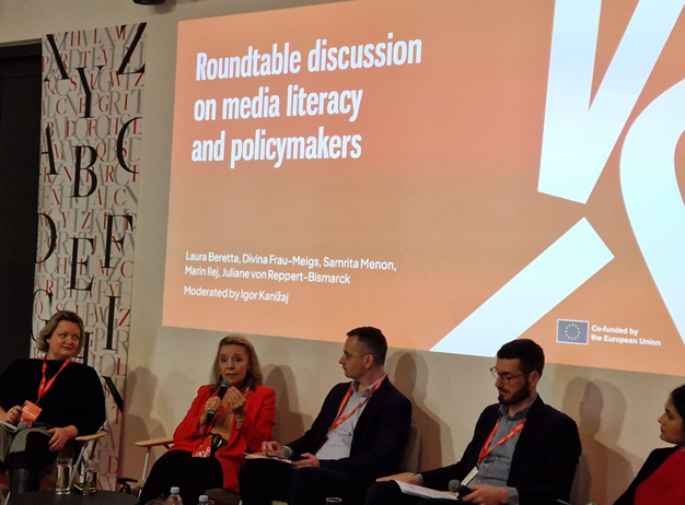 Dans le cadre du festival européen de journalisme et EMI, Voices, Divina Frau-Meigs a participé à une table ronde le 28 février sur l’éducation aux médias et les décideurs, en présence de l’UNESCO, modérée par Igor Kanizaj, membre associé de la chaire Unesco Savoir Devenir. Elle y a évoqué les obstacles à la mise en œuvre de l’EMI et les solutions à préconiser, qui impliquent souvent une meilleure coordination des acteurs de terrain et une coopération inter-ministérielle et inter-sectorielle.