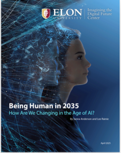 Divina Frau-Meigs a contribué à l’enquête menée par Elon University sur « Etre humain en 2035 : comment changeons nous avec l’IA ? », menée par leur centre sur le futur numérique. Le rapport publié en avril 2025 fait état d’inquiétudes sur l’évolution de traits de caractère humains essentiels tels que l’empathie, l’intelligence socio-émotionnelle, la réflexion complexe, la capacité à agir de manière autonome et le sens de l’éthique. Divina Frau-Meigs y évoque le rôle de l’éducation aux médias et à l’information pour « booster le potentiel humain » (supercharging the human) https://imaginingthedigitalfuture.org/wp-content/uploads/2025/03/Being-Human-in-2035-ITDF-report.pdf