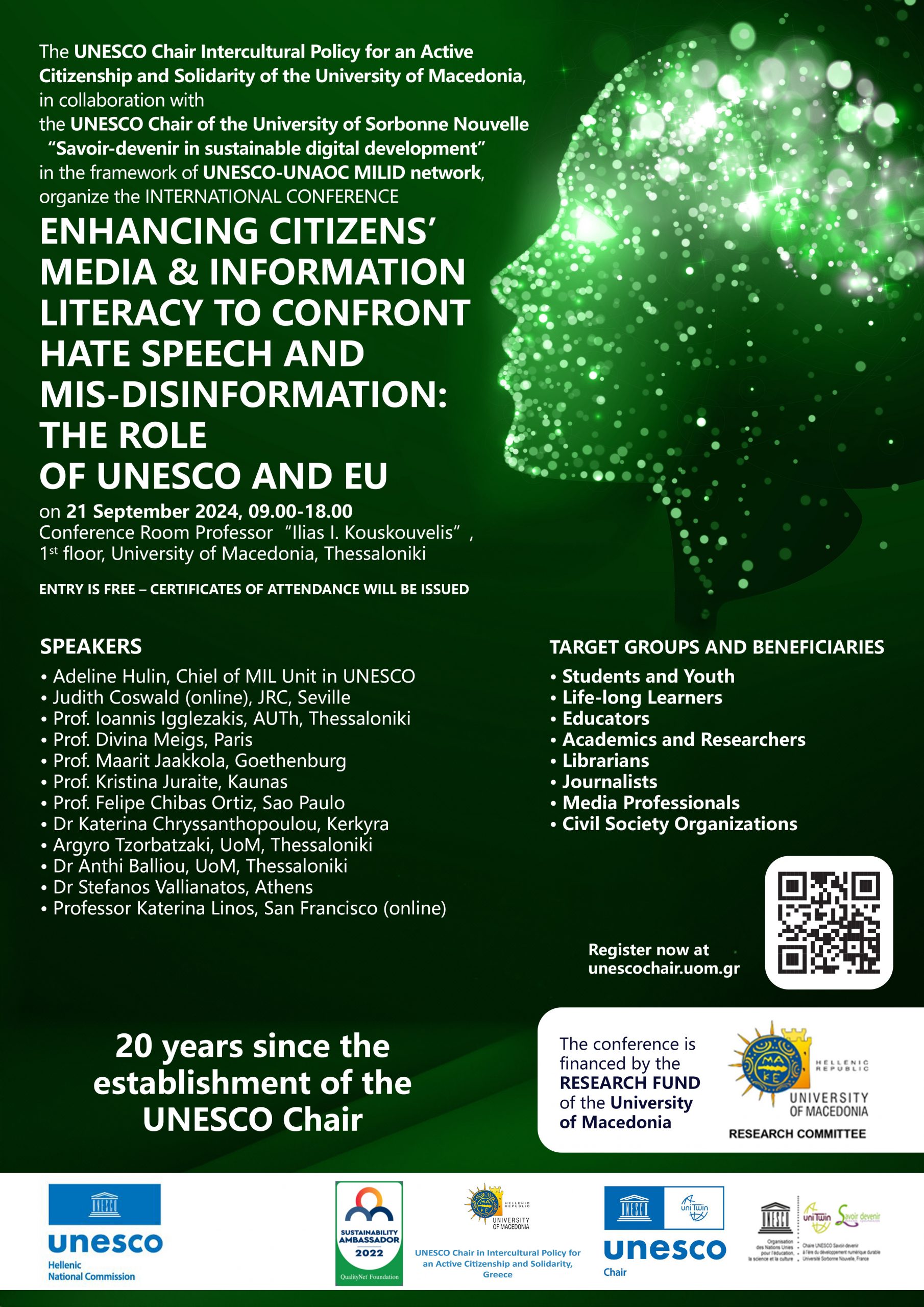 La chaire Savoir Devenir a eu le plaisir d’accueillir dans le réseau des chaires MILID un nouveau membre associé. Il s’agit de la chaire « Intercultural Policy for an active citizenship and solidarity« , dirigée par la professeur Despoina Anagnostopoulou, qui a fêté ses 20 ans!